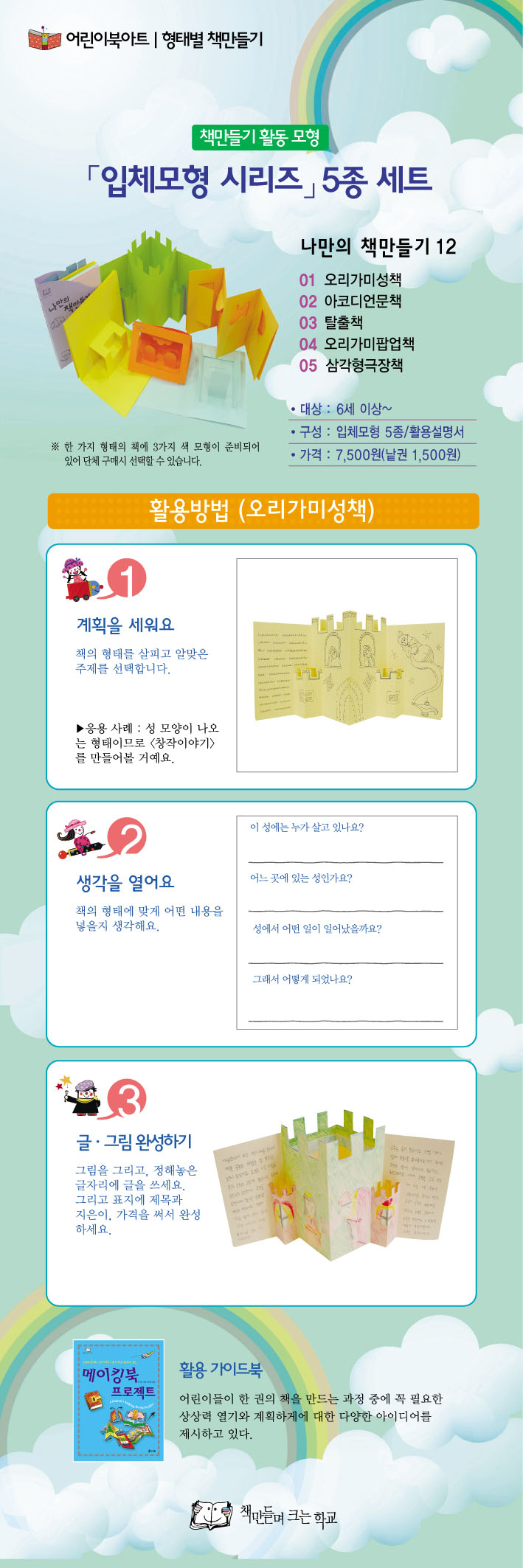 - HOME > 메이킹북 교사용지침서 > 책만들기[교재교구세트][보고따라하기] > 메이킹북 [메이킹북프로젝트-가이드북 +입체모형5종]메이킹북프로젝트 가이드북포함[책만들기 교재+입체모형]